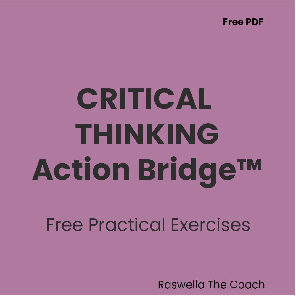 The Critical Thinking Action Bridge™ is a set of free, practical critical thinking exercises designed to help you pause, reflect, and approach problems more systematically. The exercises support clearer thinking by slowing the process down and creating space to examine assumptions, perspectives, and options.
